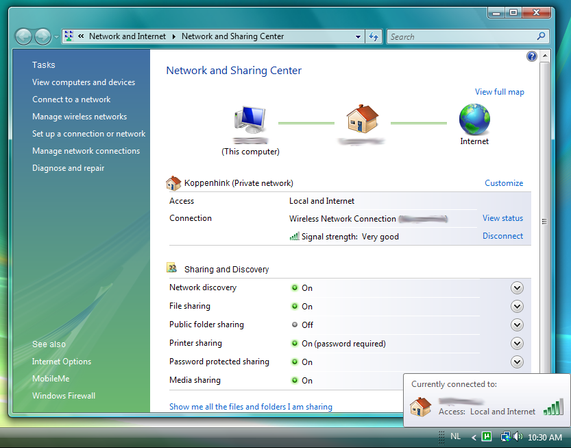 The next step is very important if you want to use Transdroid to control µTorrent from anywhere you go and not just your home Wi-Fi network. You will need to open up the port 8080 and redirect this to your home computer. First get your Window computer’s local IP address. Where you find this depends on your Windows version. On Windows Vista, left-click the Network Connection icon in your system tray, in the very bottom-right corner of your screen, and choose ‘Network and Sharing Center’.